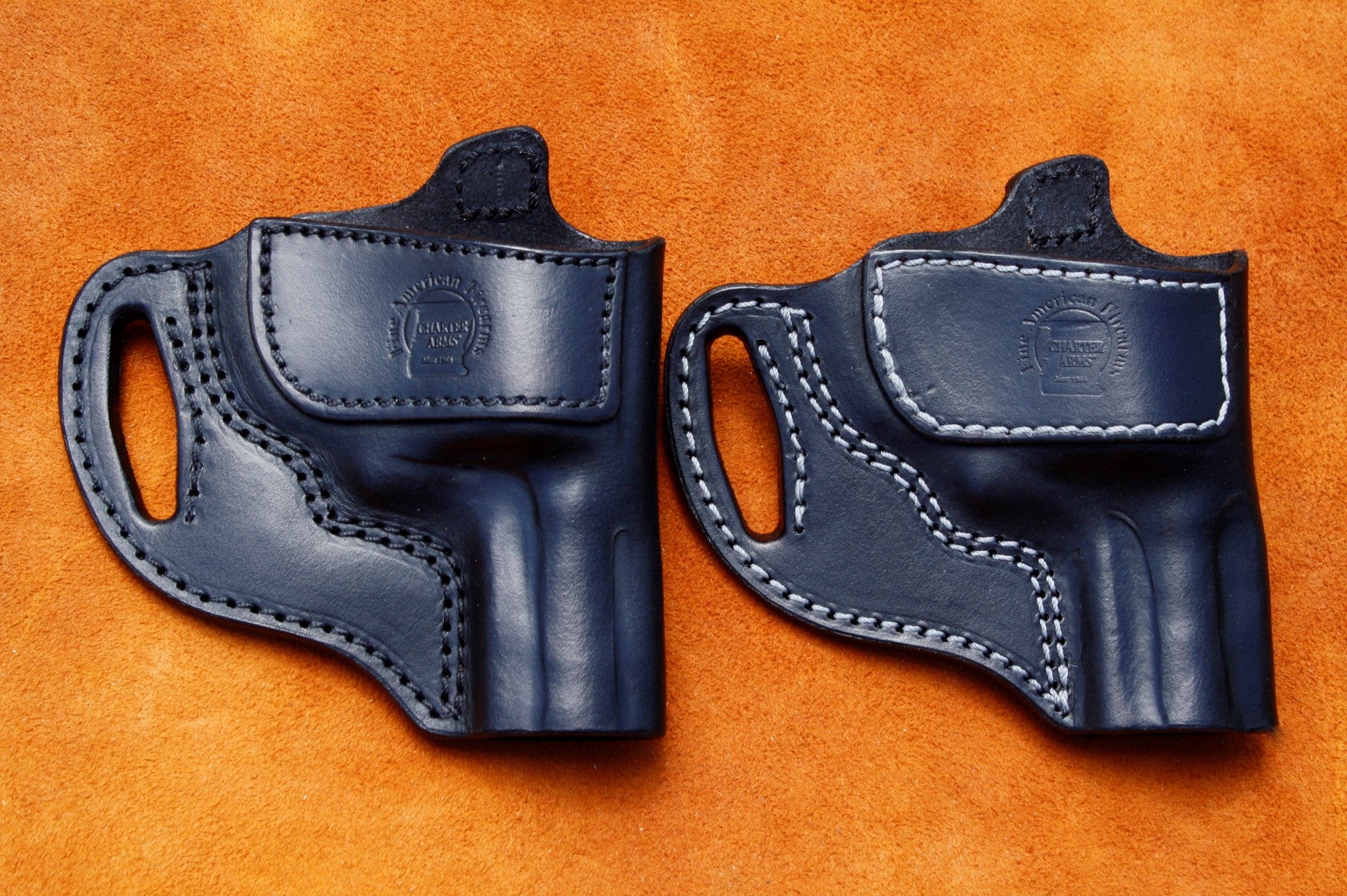 Genuine leather holsters are made specifically for the Charter Arms Large Frame Series Revolvers with a 2 - 2.5" Barrel, including 9mm Pitbull, .44 Bulldog, .40 S&W Pitbull, .357 Mag Pug and .38 6 Shot Police Undercover.