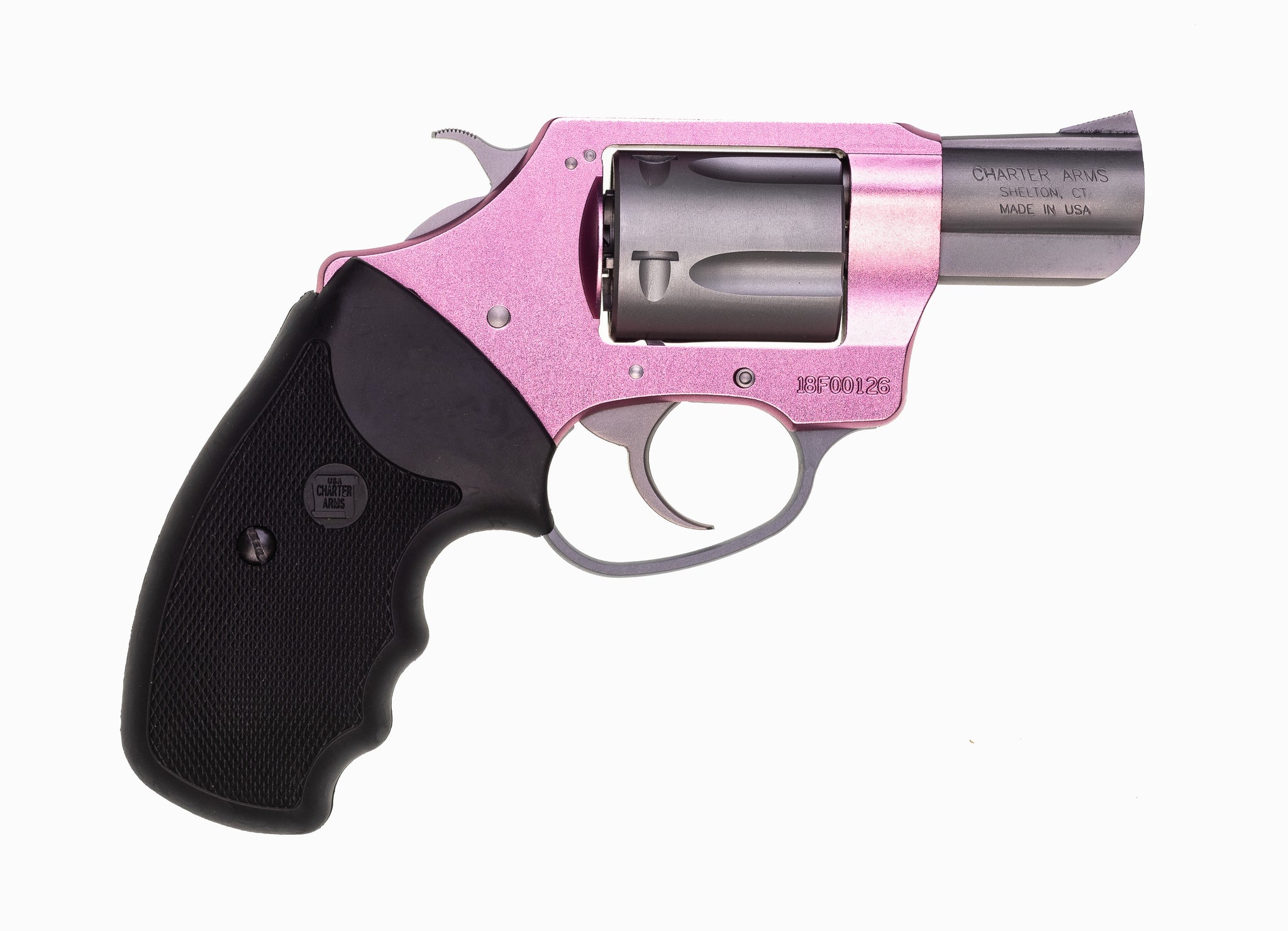 This compact, ultra-lightweight, five-shot, .38 Special revolver features a 2” barrel, fixed sights, and traditional spurred hammer. Like all Charter revolvers, the Pink Lady has a three-point cylinder lock.