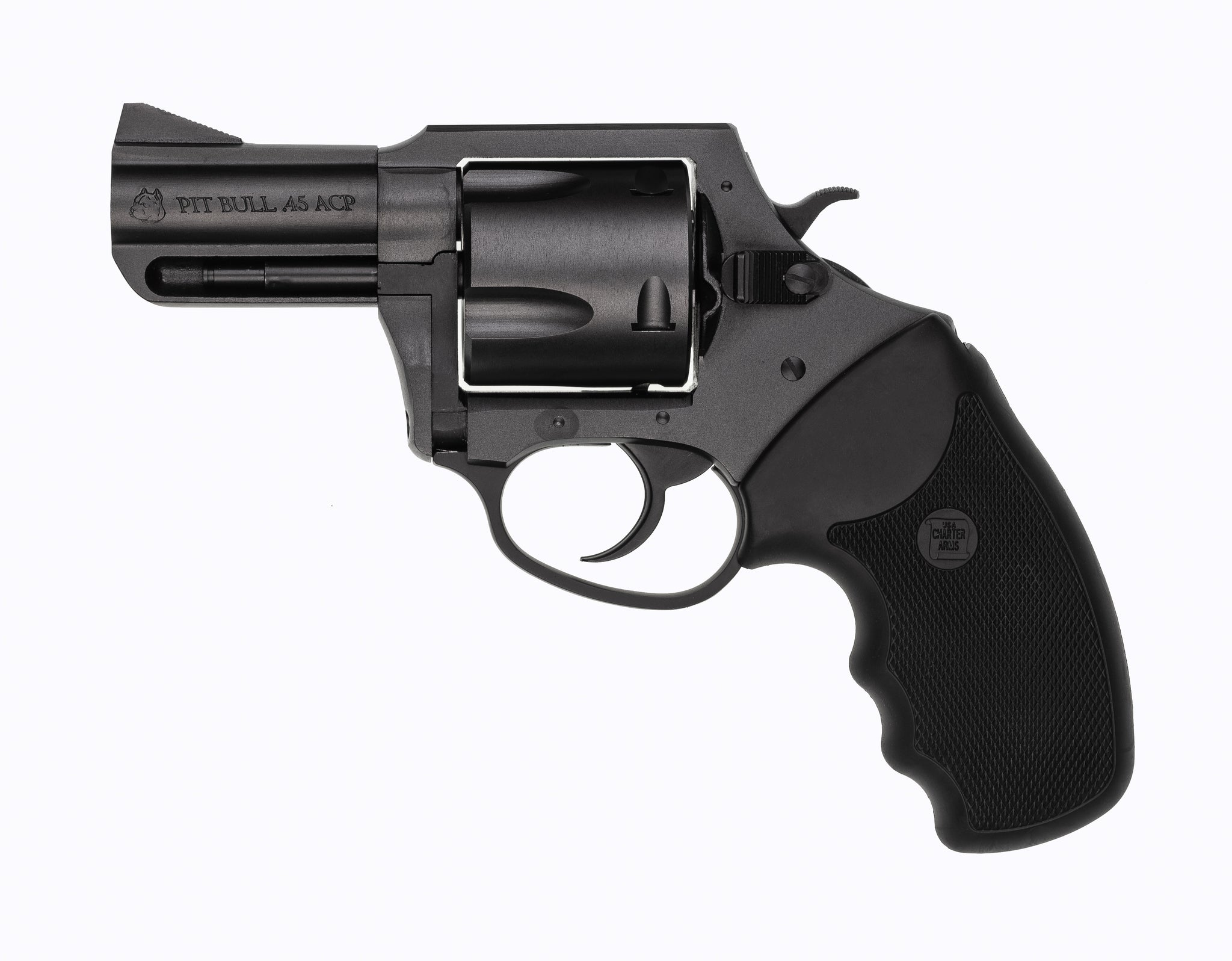 Introducing the Charter Arms .45 ACP caliber Pit Bull. The unique design provides a dual coil spring assembly located in the extractor which allows for the insertion and retention of the .45 ACP caliber cartridge in each chamber of the revolvers’ cylinder. (No moon clips required) This patented system allows the shooter ease of ejecting spent cartridges for immediate reloading.
