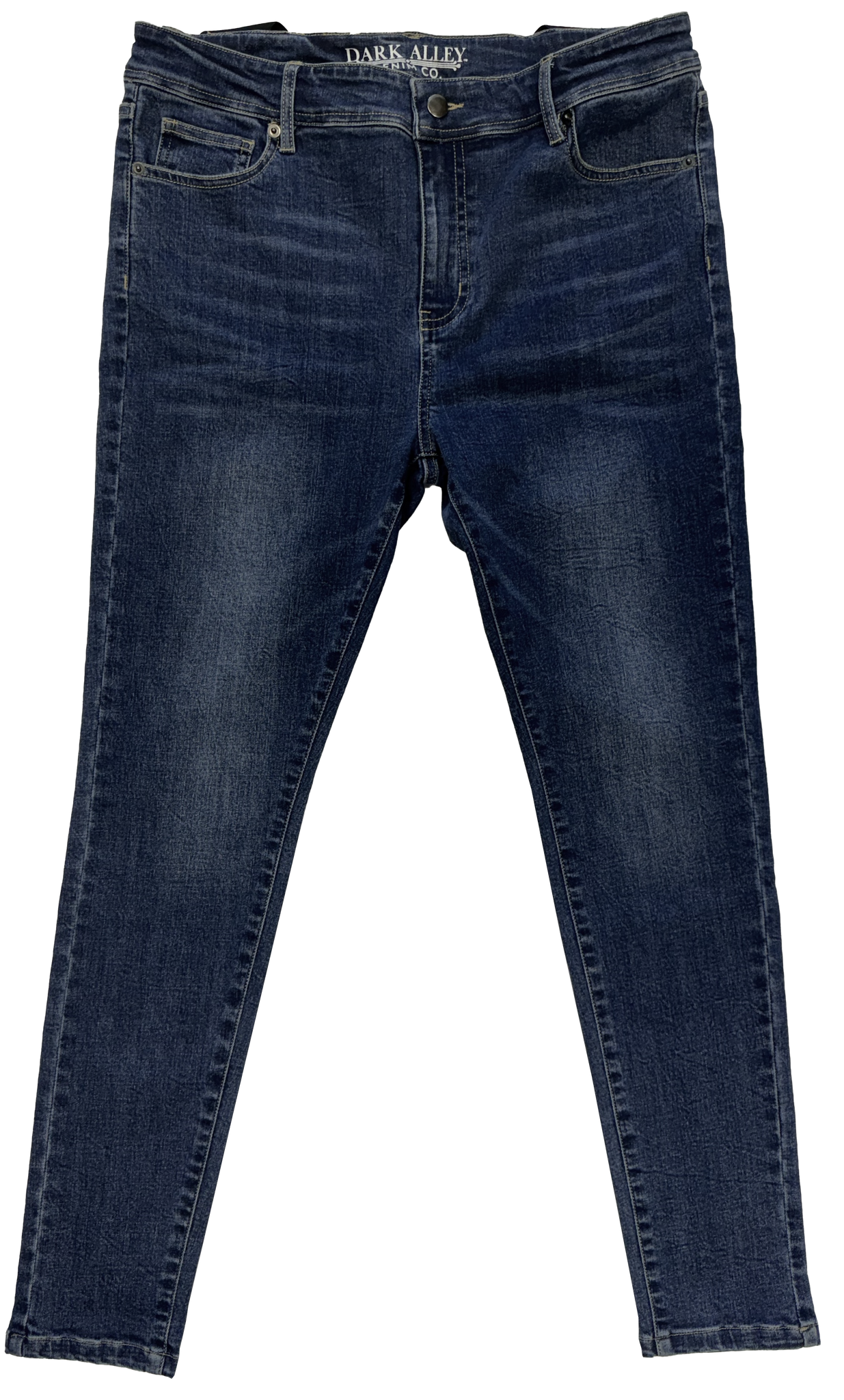 A flattering high-rise and tapered design The premium denim fabric is not only durable but features a mechanical stretch allowing unrestricted movement and ensuring a perfect fit every time. Dark Alley Denim is available in a classic, indigo dark wash, and a distressed medium wash.