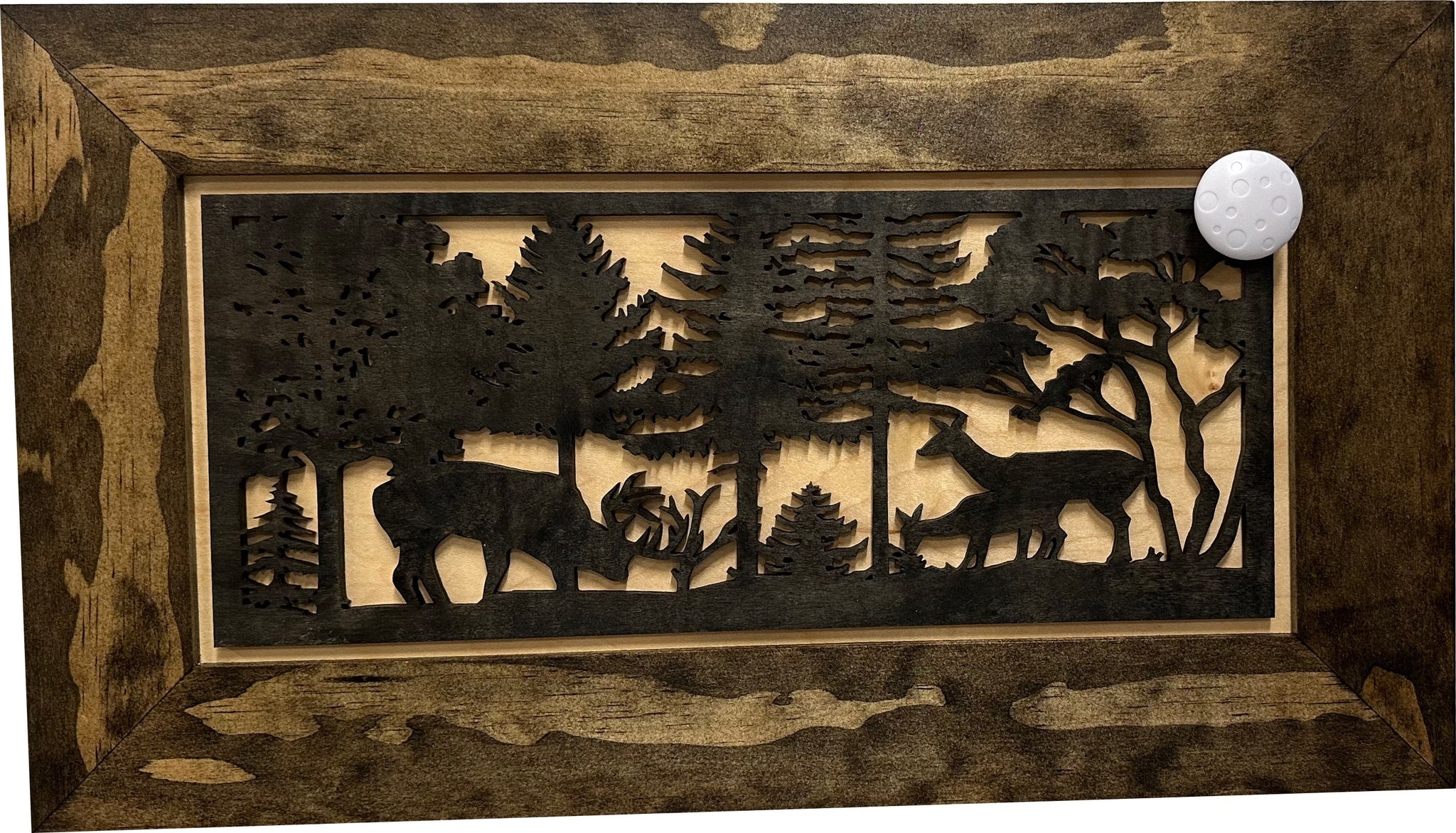 Securely store your firearm in plain sight with the Bellewood Designs Decorative Deer Scene Wall-Mounted Secure Gun Cabinet. Your firearm and other tactical gear is easily accessible yet securely stored, so you'll never have to worry about leaving it unattended. Once you apply the key the lock immediately disengages and you're ready for self defense. This cabinet features a beautiful brown frame, natural maple background and eye-catching black 3D deer scene. The cabinet will be a focal point of any room and no one will ever know what's inside!