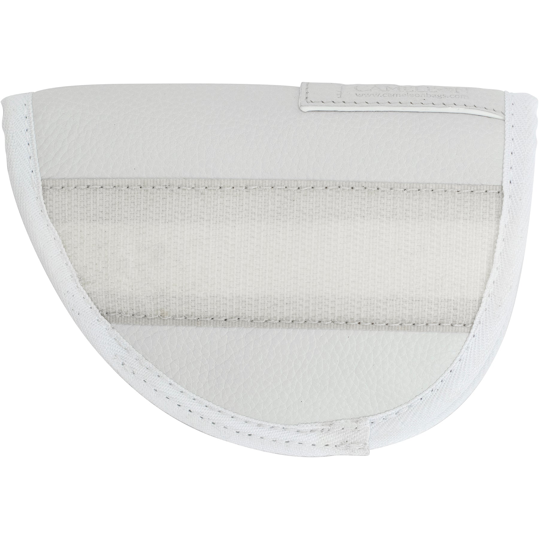 This concealed carry bowling bag is a perfect blend of style and functionality, crafted from soft white leather with contrasting navy blue trims. It exudes sophistication and discretion, ensuring that it's as suitable for professional environments as it is for casual outings.
